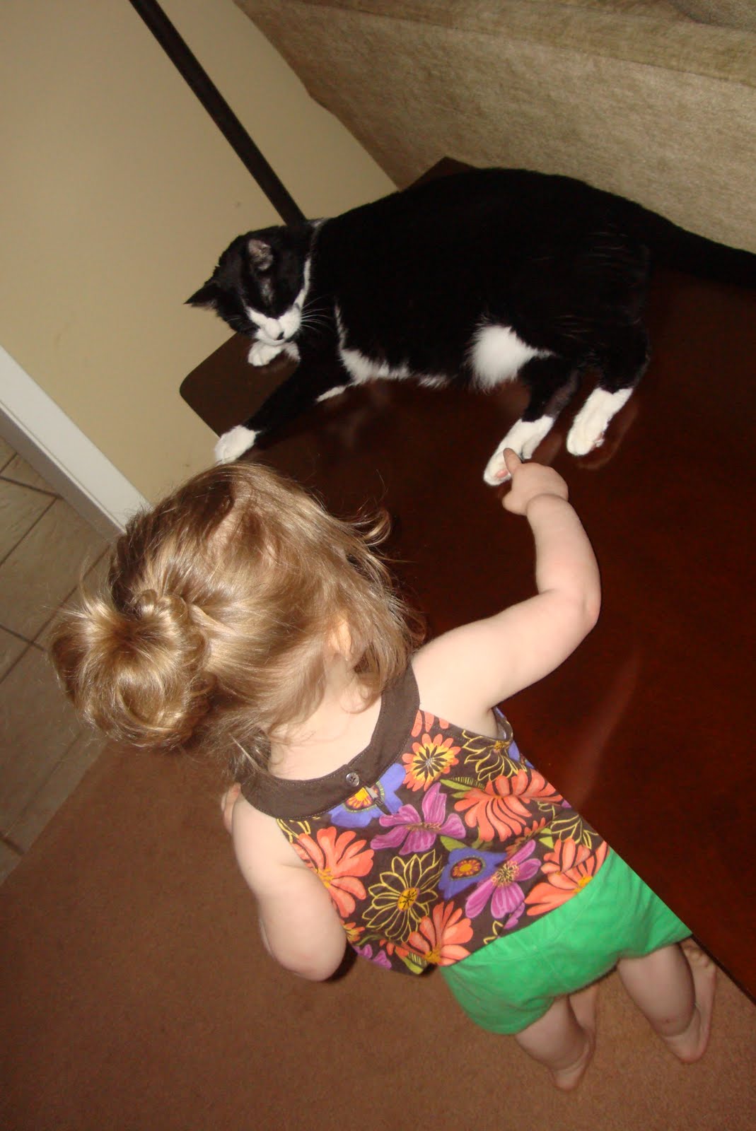 And after our snack, Carson had a quick chat with Jacie, the fat cat. Jace is becoming more and more like, “Whatever…” each day. She’s giving up. Haha!